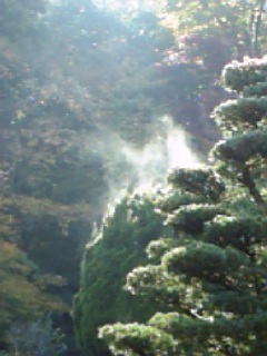 日が当たって木から湯気(笑)