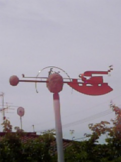 一番左にサルがいて、真ん中に桃太郎と犬がいて、最後に記事がいるの。風見鶏の上に乗っかってたの。