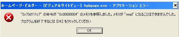 ちなみに、表示されるエラーはこういう感じのものです。