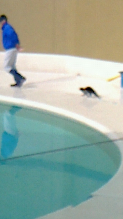 んで、あと。何気なくアシカショーをするプールを覗いてみたら、コヅメカワウソが飼育員さんと運動していた!